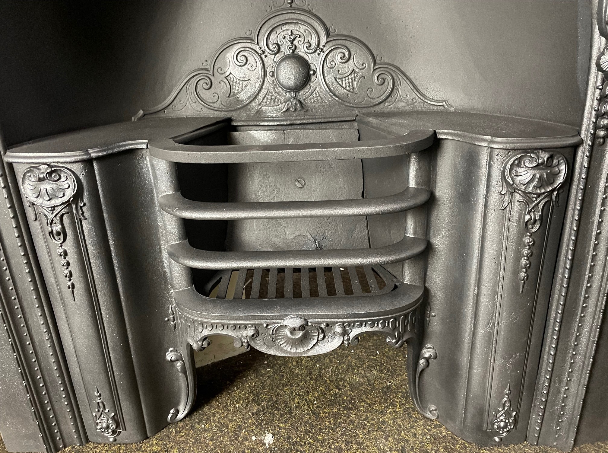 Reference: AHG 1106 - Original antique cast iron Georgian hob grate all complete with original grate and draught plate with beautiful decorative detailing around the opening