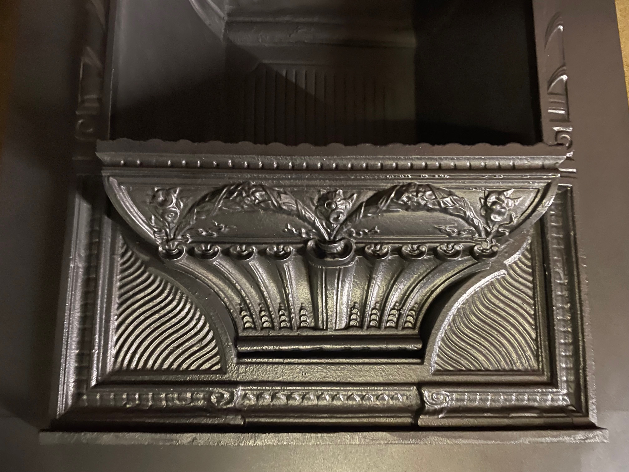 Reference: AI 1146 - Original antique cast iron bedroom fireplace of Victorian design complete with original cast fireback and grate.