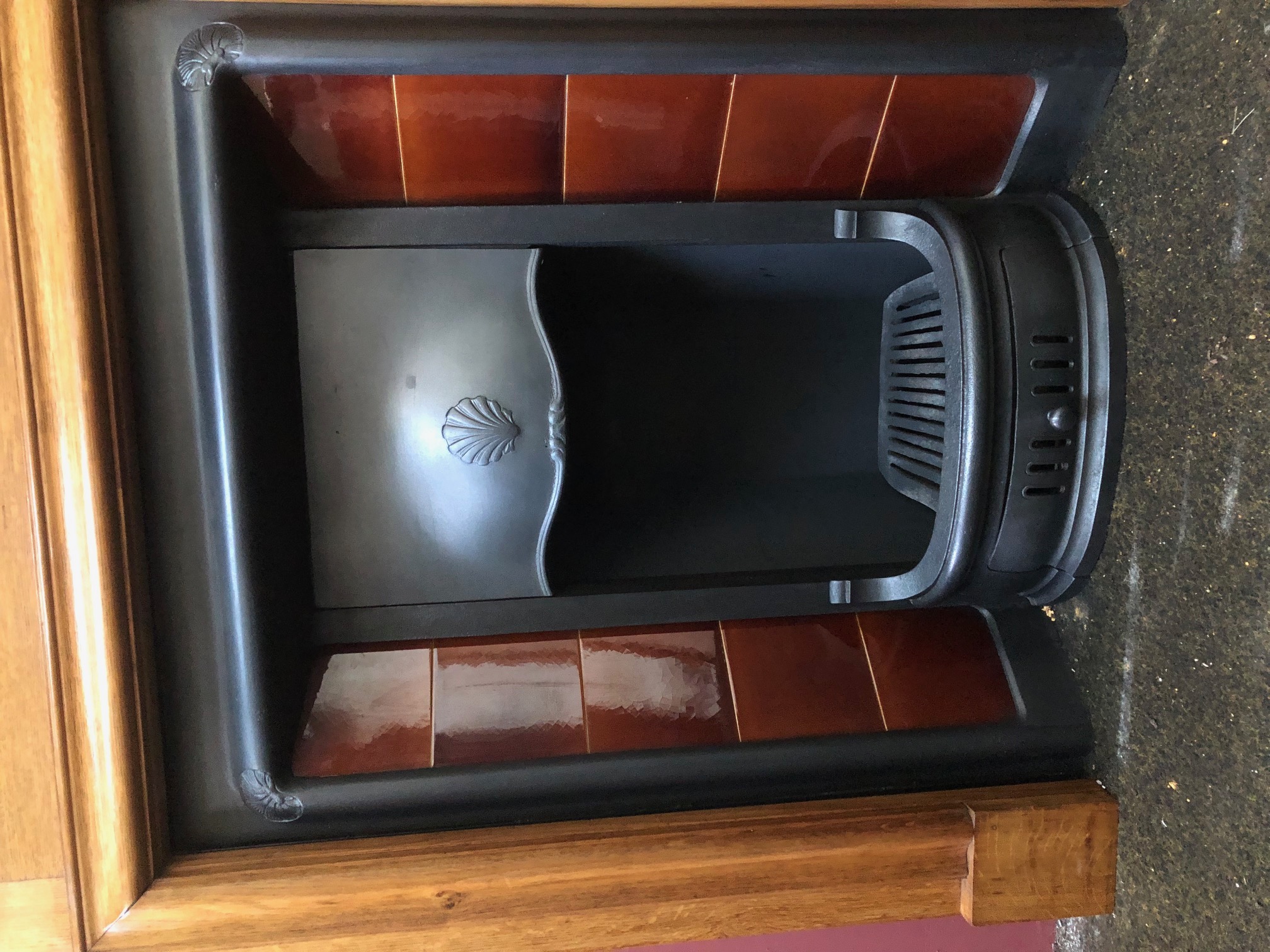 Reference: ATI 1108 - Original antique 1920s / 1930s cast iron insert having splendid classic clean simple design features of the period. Set of tiles are extra.See antique tile page. Tiles are extra so please choose from our selection on the antique tile page. This insert can be sold without tiles leaving you to fit your own tiles. Inserts can be used for solid fuel or a living flame gas fire , which we can supply.