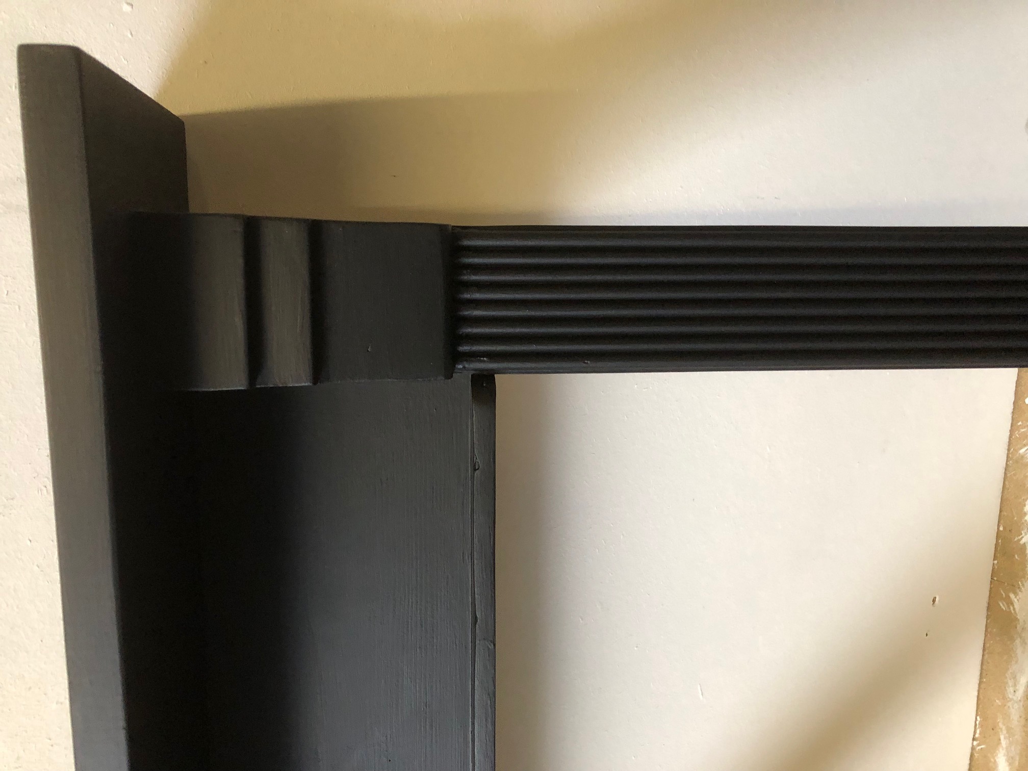 Reference: AWS 1117 - Original antique bedroom fire surround in painted wood. Neat and attractive with delicate fluting down the legs and small shelf below main shelf. Ideally fit with cast iron interior. Shown with AAI700b WE CAN FIT BLACK SLIPS TO REDUCE OPENINGS TO SUIT ANY INSERT. PLEASE ASK IF REQUIRED