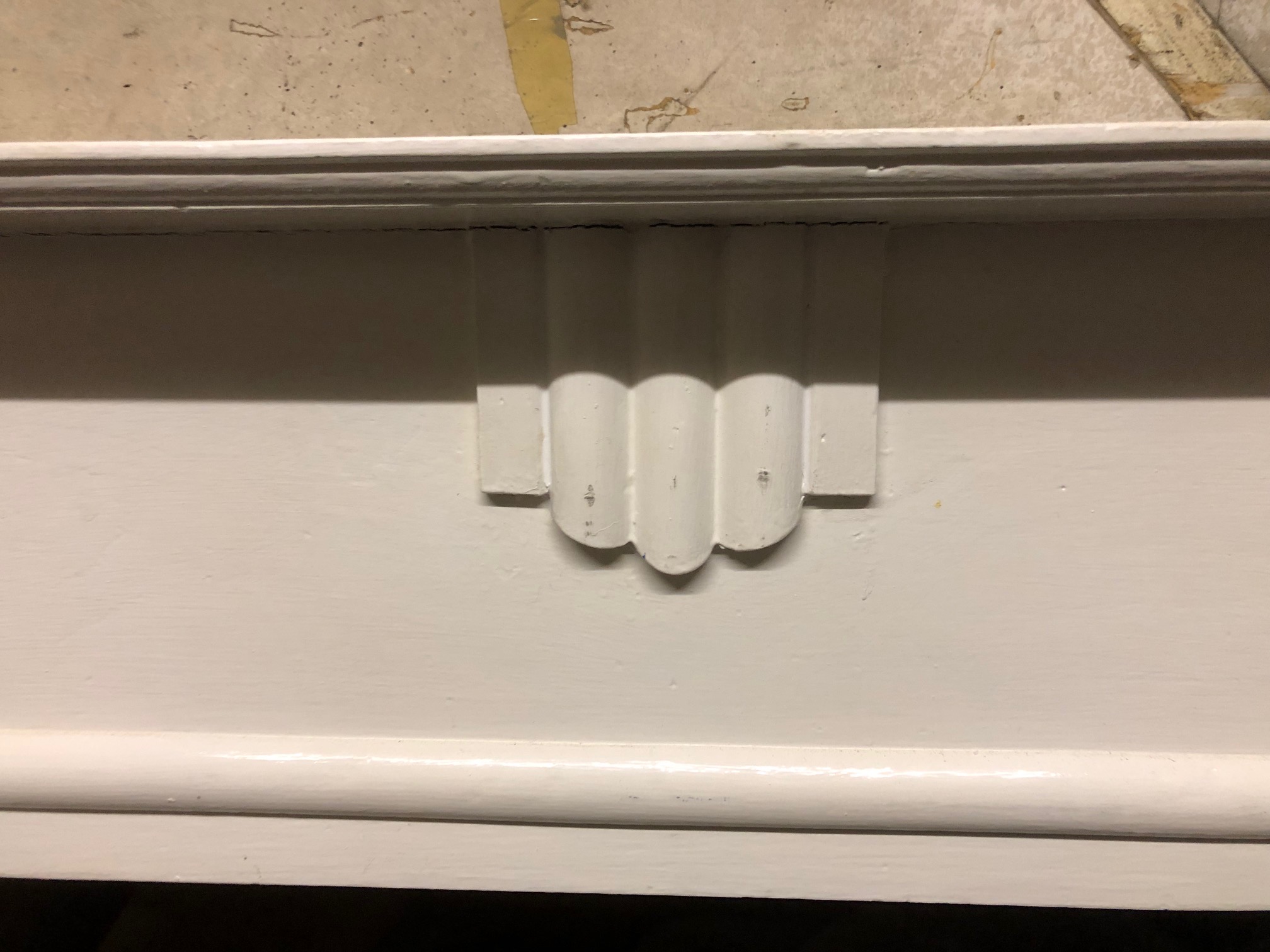 Reference: AWS 1139 - Original antique Art Deco oak fire surround in unrestored painted finish for someone who wants a home restoration project for themselves Sold as seen