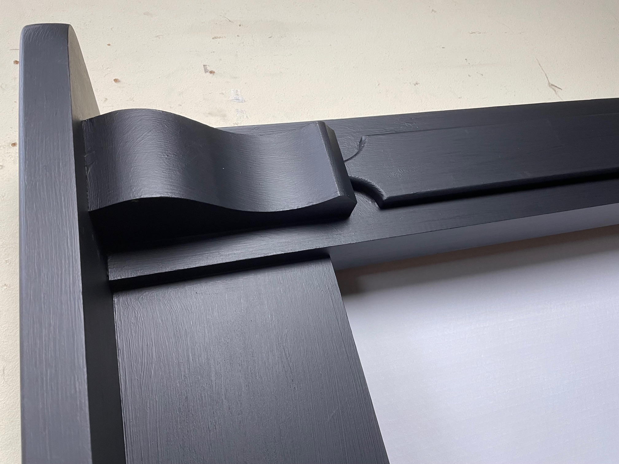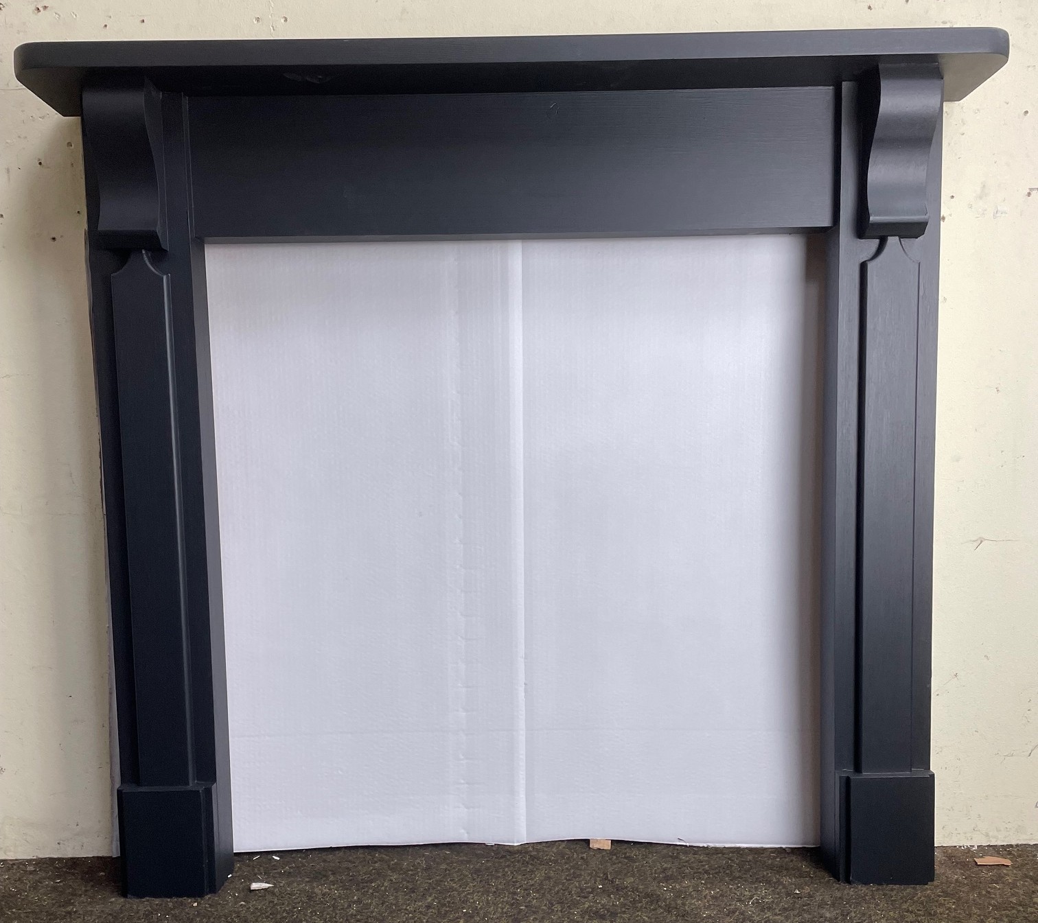 Reference: AWS 1168 - Reclaimed wood fire surround finished in black. Typical Edwardian design with the simple corbels under the shelf with a good thick shelf. ONE ONLY AVAILABLE