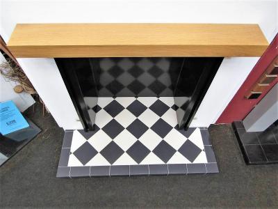 Reference: BRI7 - Stove powder coated metal Chamber - Tiled Hearth and Oak Beam - Ex Display Main dimensions are for the stove box (minimum dimensions are internal size). Oak beam is 42" wide (1061) x 5.5" shelp depth (140mm) x 2 1/4" high (57mm) . Hearth is 48" wide x 15" deep x 2.25" high(Inner dimension x 30 wide x 14" deep).