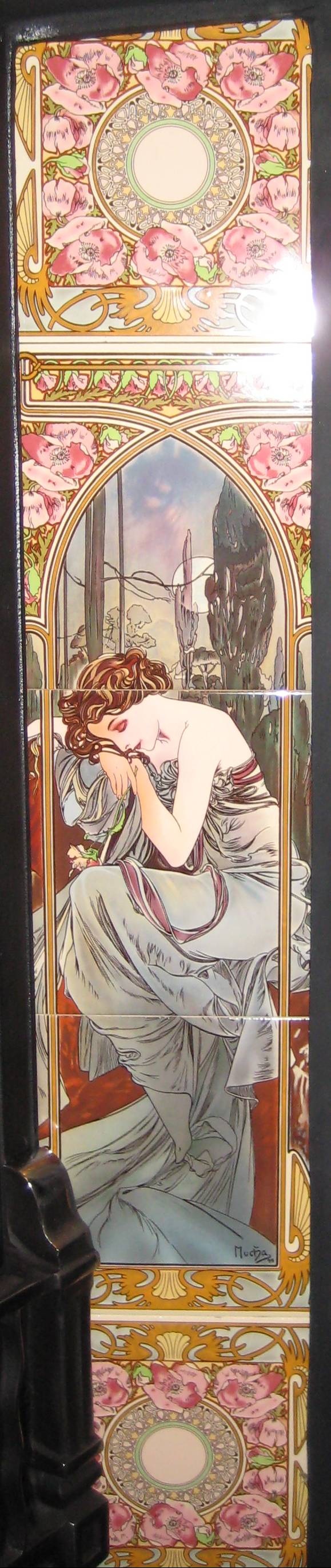 Reference: RCS 03 - The Clarendon Period Integral Fireplace, Art Nouveau style, shown with period tiles not included . complete with metal fire back. Visit our showroom to see a wide range of our fireplaces. Black or semi polished finish. Available for Solid fuel add £70 ,For Electric or gas fire add £297.