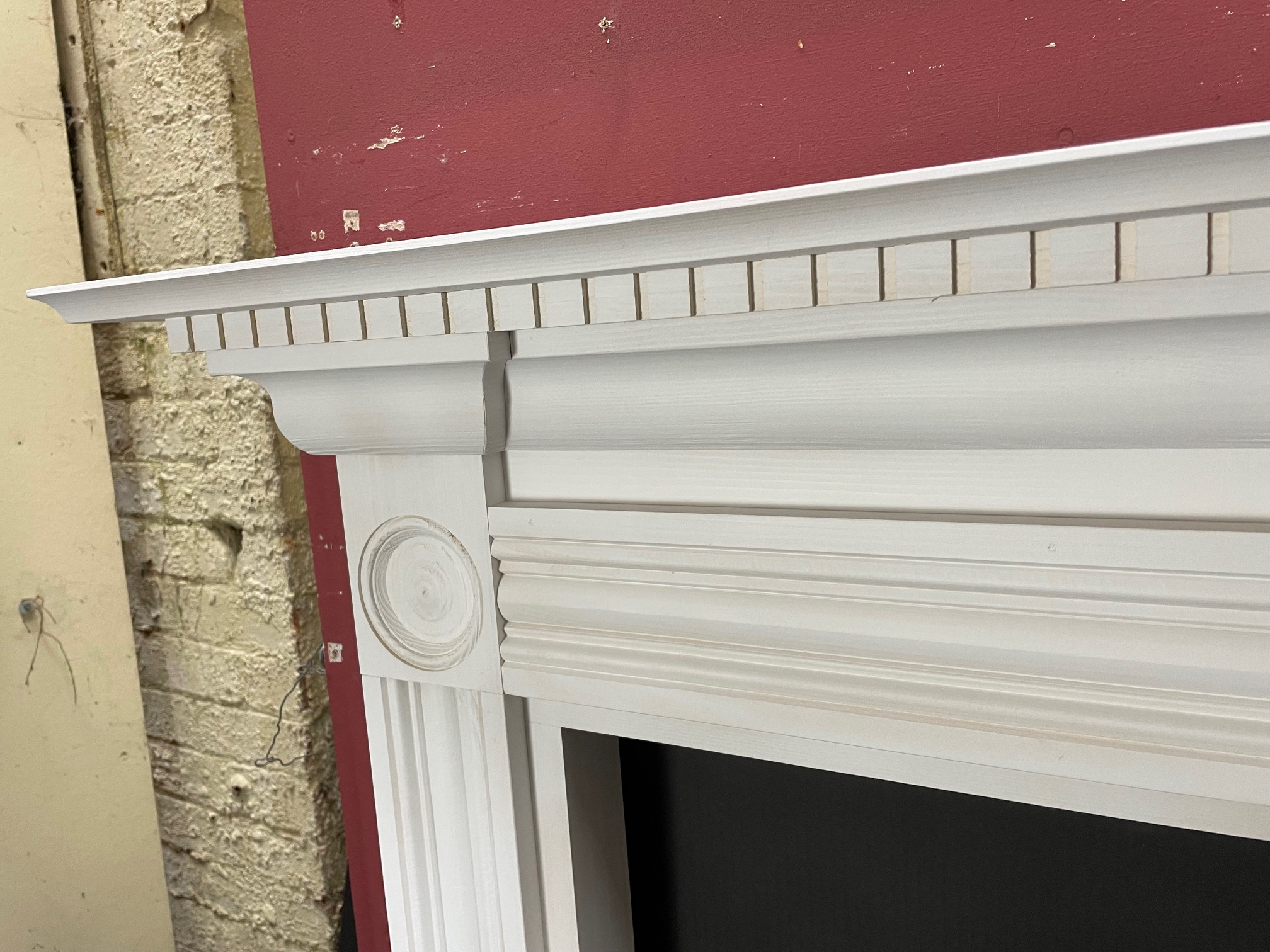 Reference: AWS 1163 - This is an impressive design copied from an original design and EXCLUSIVE TO HERITAGE FIREPLACES having all the usual classic Georgian design features of dentil moulding under shelf, fluted moulding to the legs and frieze , complete with simple roundels above each leg
